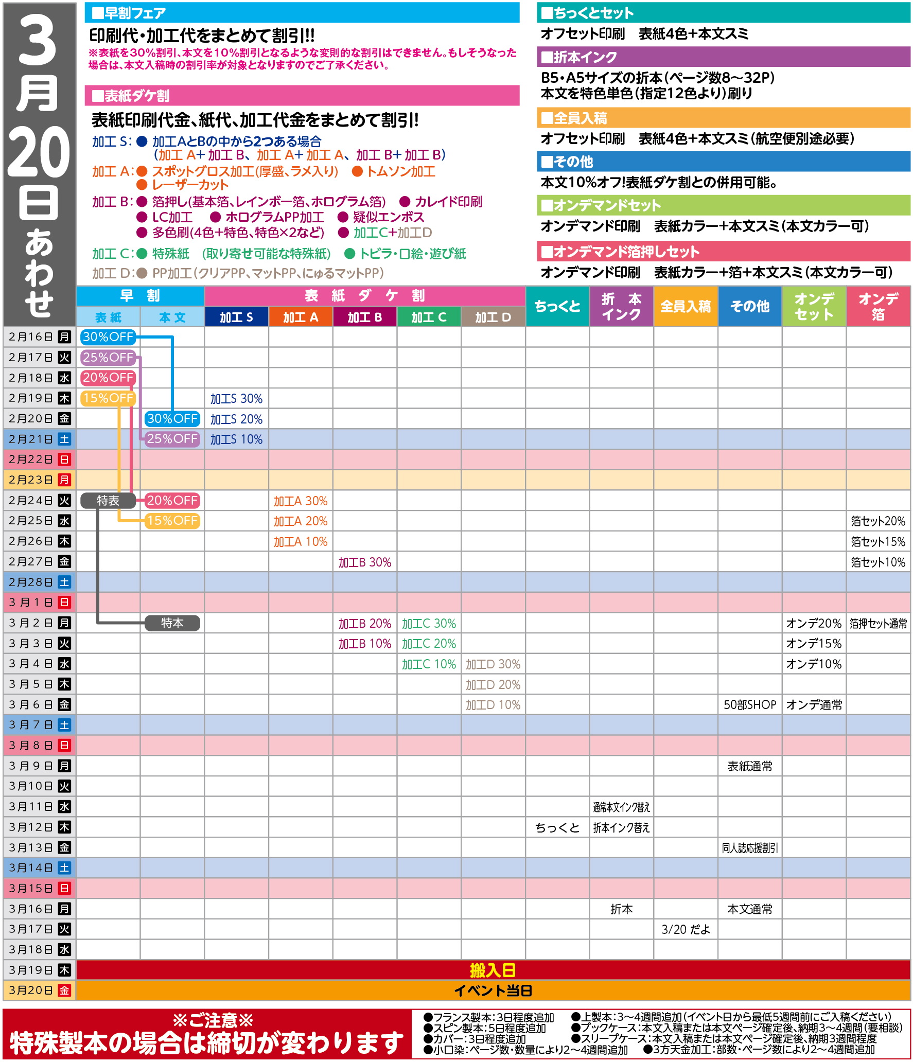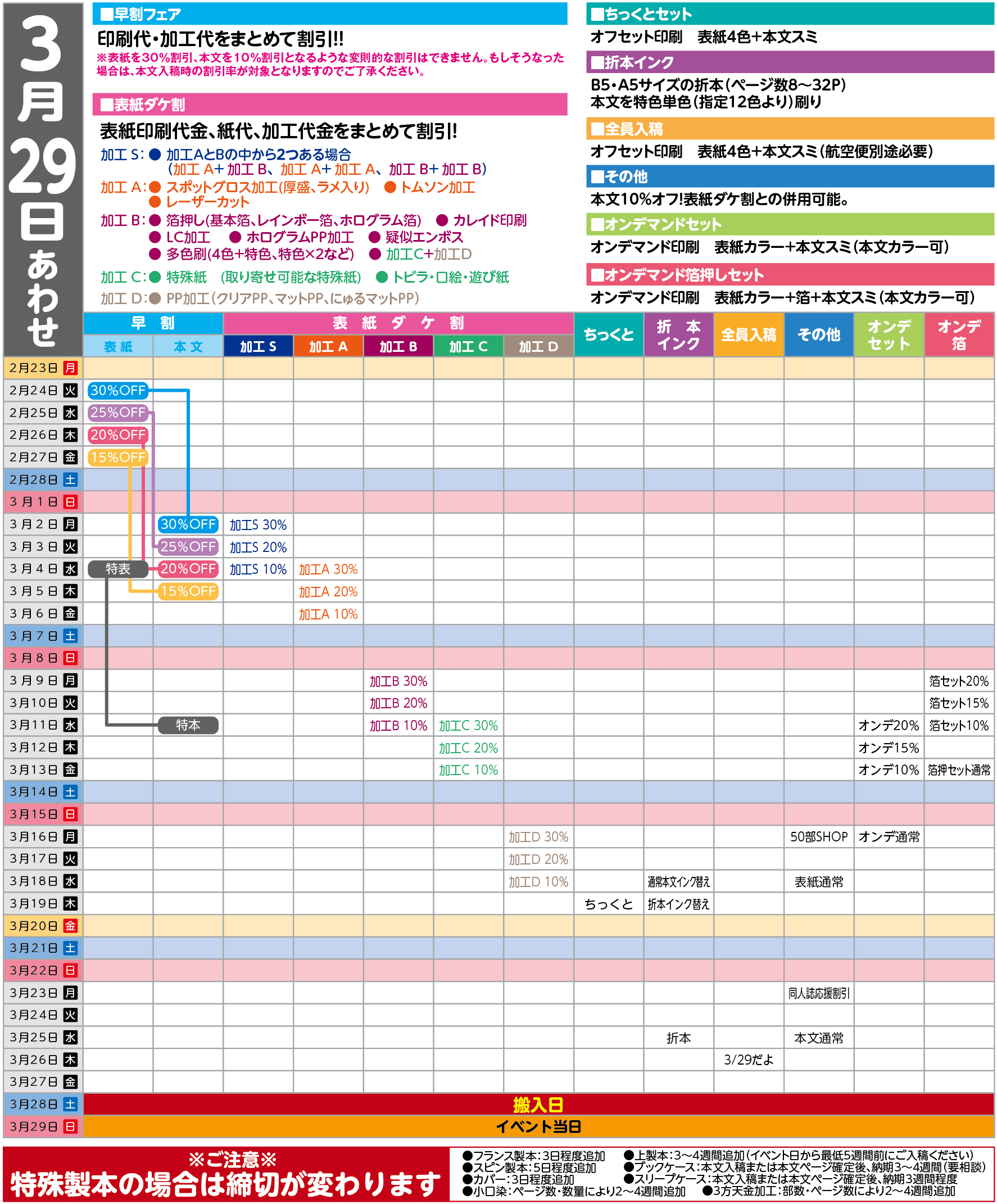 表紙加工別割引締切日